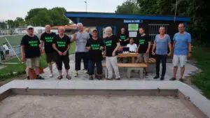 Damit man alle nötigen Maßnahmen, ohne den Hauptverein zu belasten durchführen konnte, wurde von jedem der mitmachen wollte ein Einstandsbetrag erhoben. Der finanzielle Rahmen erlaubte es nun ein Boulfeld zwischen 8.Mai und 23.Oktober nach eigenen Wünschen anzulegen. An 24 Montagen und mindestens je 2 Stunden wurde in Eigenregie das Projekt von 11 Mitglieder realisiert. Ganze 17,5 t Baumaterial wurde verarbeitet.
